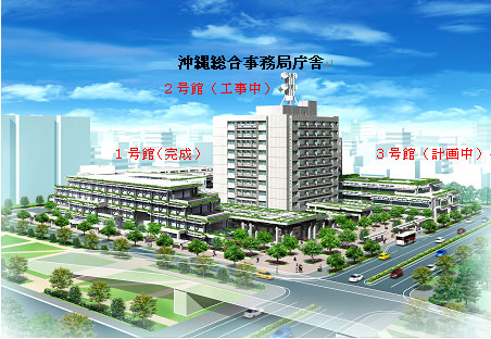 効率的な行政サービス、仕事の能率、土地の高度利用、建設費の削減等のため庁舎の合同化を図ってきている。これまで62の官署を8の合同庁舎(総延べ面積約5.5万u)に集約した。平成15年6月には那覇第2号同庁舎1号館が完成し、平成17年度から沖縄総合事務局が入居する合同庁舎2号館の工事に着手し、平成20年3月完成の予定としている。