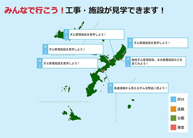 沖縄総合事務局開発建設部所管の見学できる工事・施設は、