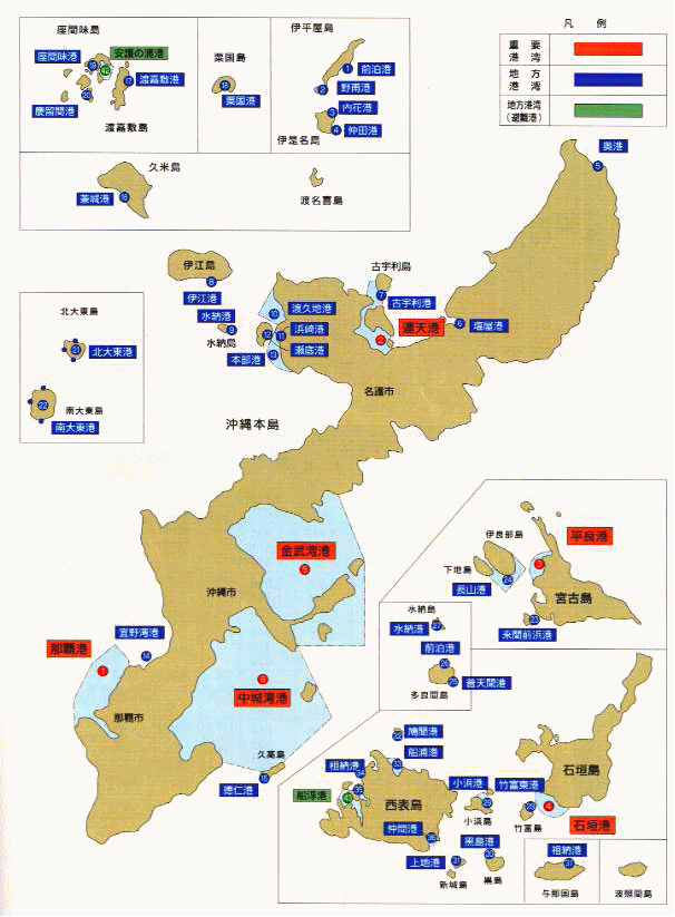 沖縄の港湾位置図