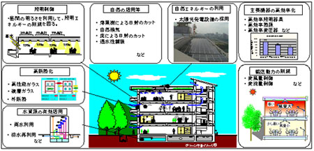 京都議定書目標達成計画(平成17年4月)における建築物に係る二酸化炭素削減目標(2010年までに1990年比15%増の水準に抑制)等を踏まえ、官庁施設について二酸化炭素排出量の削減を図るため、太陽光発電、複層ガラス、設備機器の効率化等の環境負荷低減技術を活用した環境配慮型官庁施設(グリーン庁舎)の整備、既存官庁施設についてはグリーン改修を推進している。