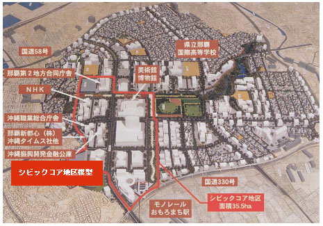 那覇新都心シビックコア地区では、街の活性化への先導役として沖縄職業総合庁舎を整備した。また那覇第2地方合同庁舎はシビックコア地区の一画にあり、その中核施設として整備が進められている。