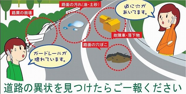 このようなことから道路の異状を発見された場合、直接道路管理者にかけられる道路緊急ダイヤルの開設により、より、より迅速に対応を図ろうとするものです。