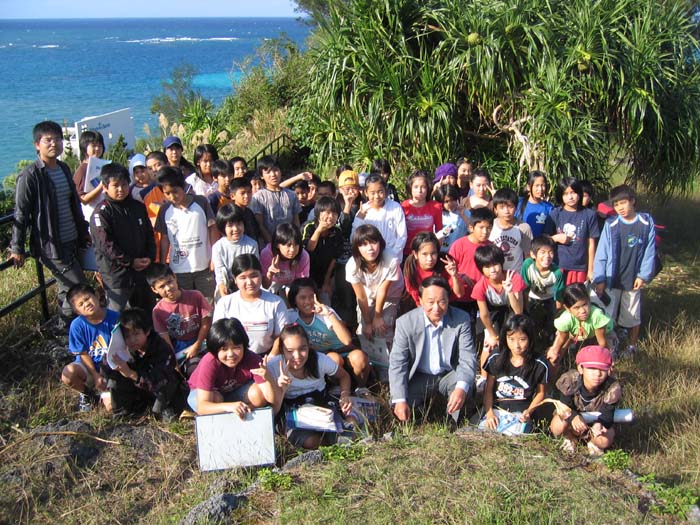 そして歴史国道見学では、琉球王朝時代の主要道路であった「国頭方西海道」の一部、比屋根坂の石畳を登り、海を見渡せる高台で恩納村博物館の館長さんより、歴史についての説明を受け有意義な時間を過ごしました。