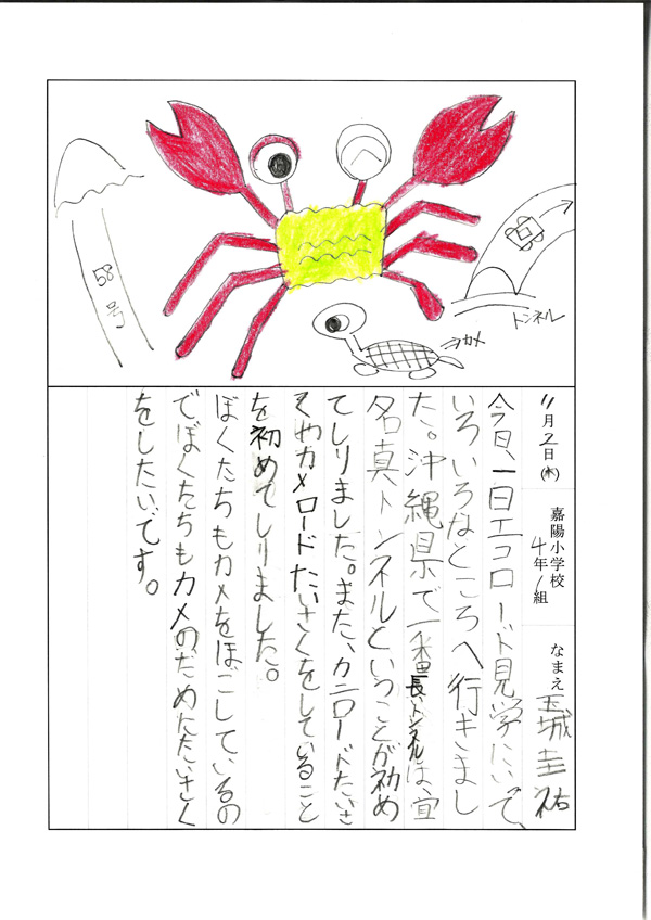 ※学校の近くにウミガメの産卵地があるため嘉陽小学校のみなさんはウミガメの保護活動を行っています。