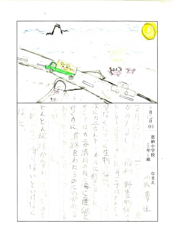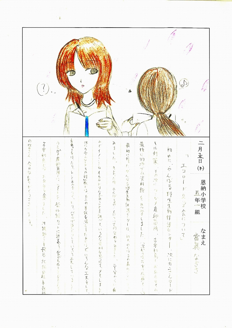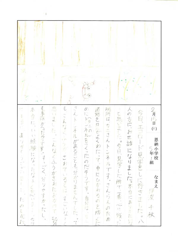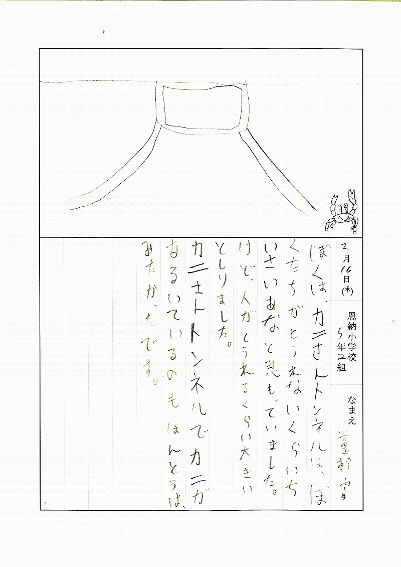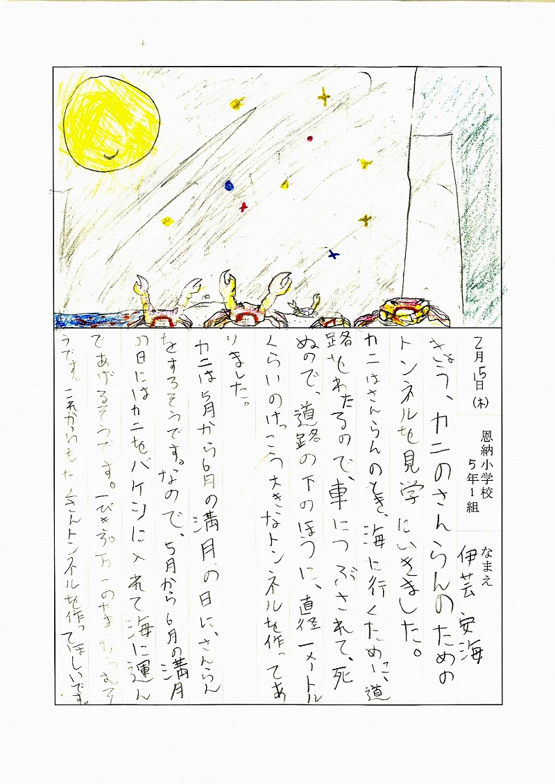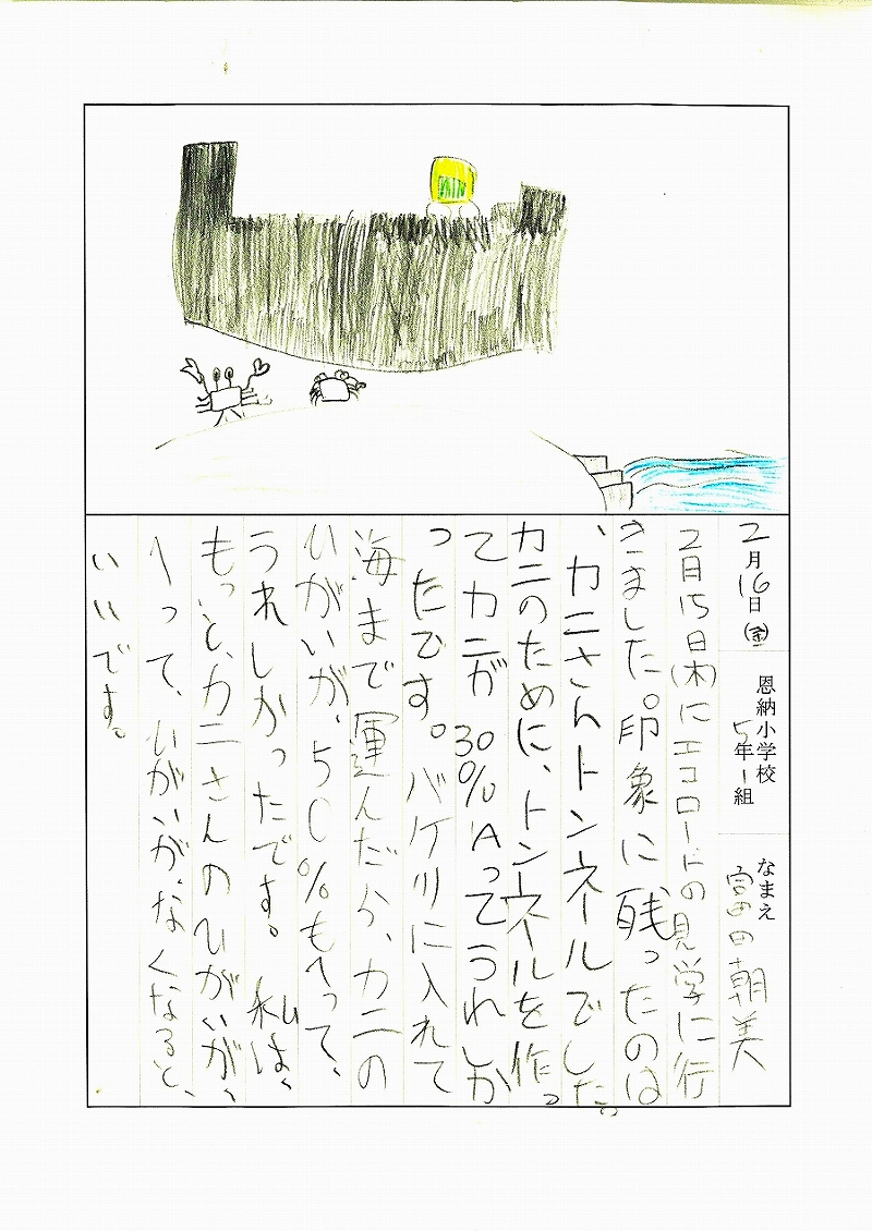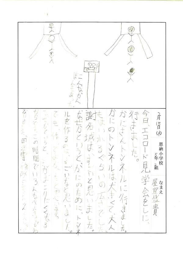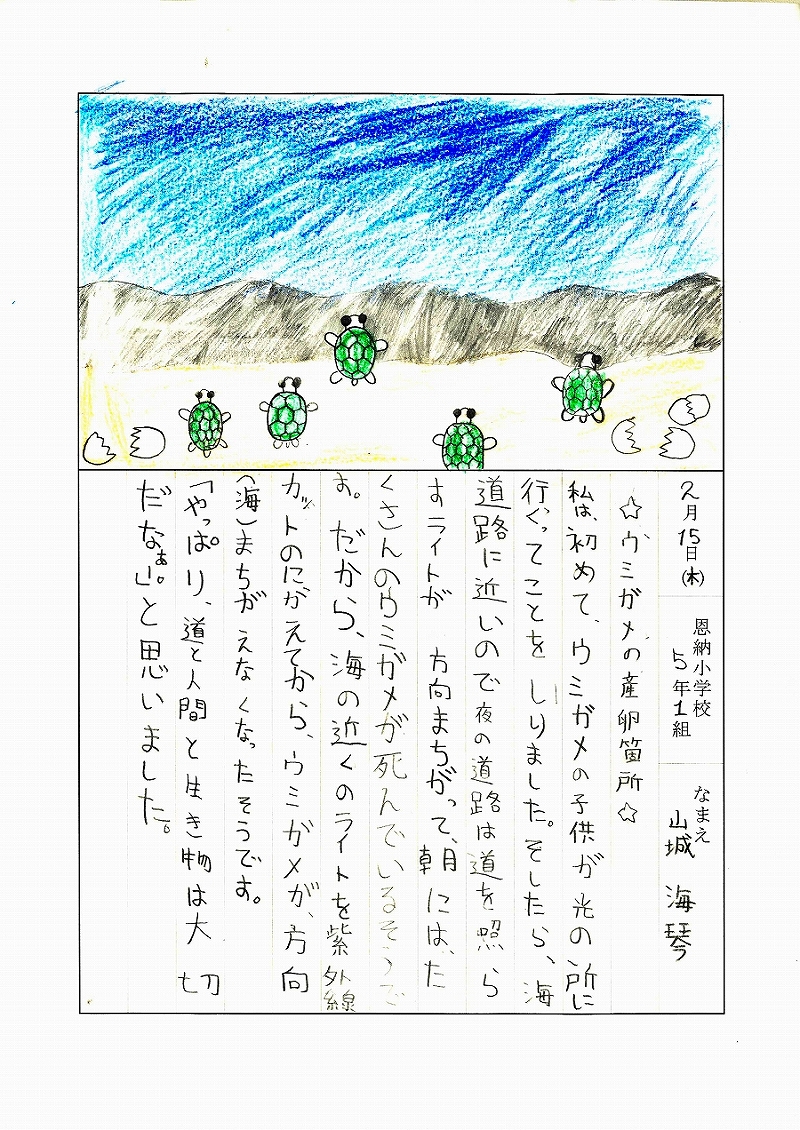 恩納小学校のみなさん、楽しい絵日記をありがとうございました!感想文を読むと、この見学会で色々なことを楽しみながら学んでくれたんだなぁって、よくわかってうれしかったです!みなさんは、もう6年生になっていますよね。見学会で学んだことを忘れず、最上級生として頑張ってくださいね!