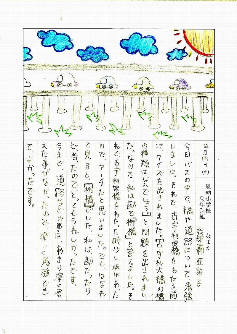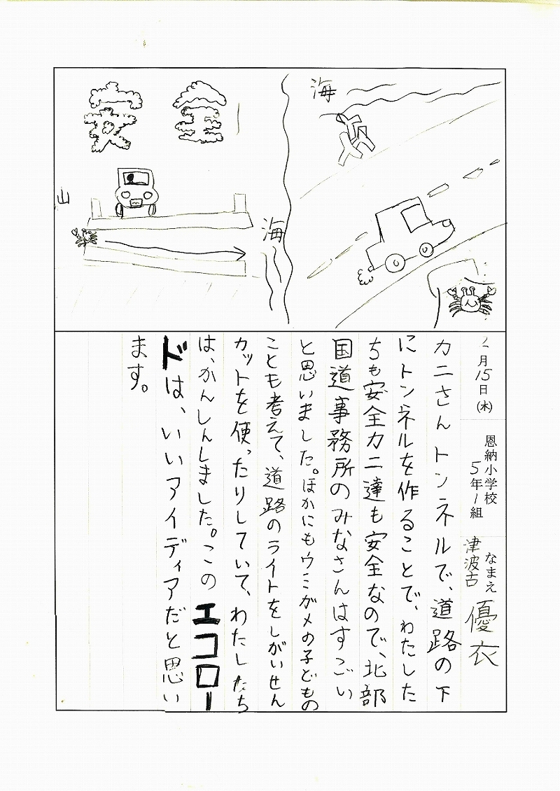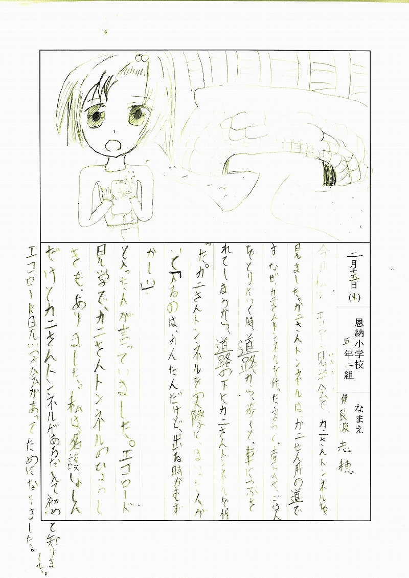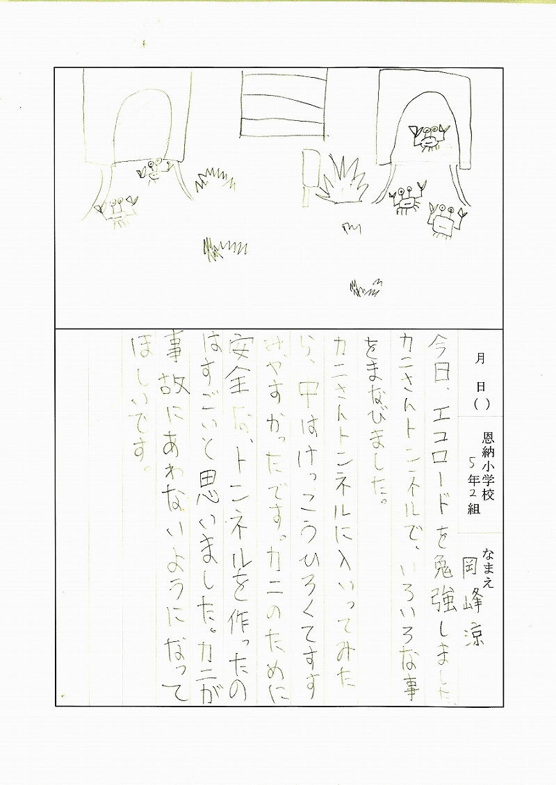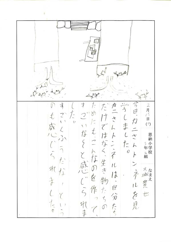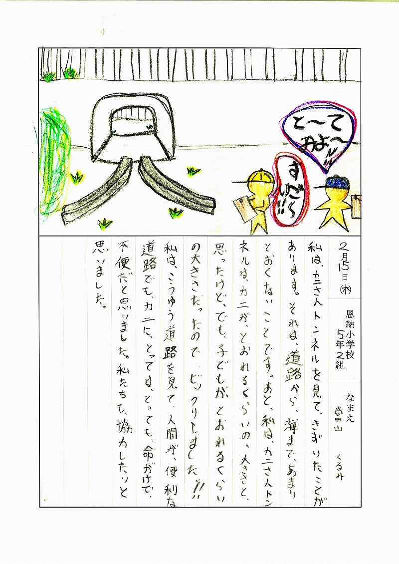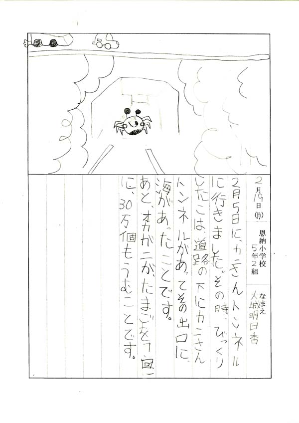 恩納小学校のみなさん、楽しい絵日記をありがとうございました!感想文を読むと、この見学会で色々なことを楽しみながら学んでくれたんだなぁって、よくわかってうれしかったです!みなさんは、もう6年生になっていますよね。見学会で学んだことを忘れず、最上級生として頑張ってくださいね!