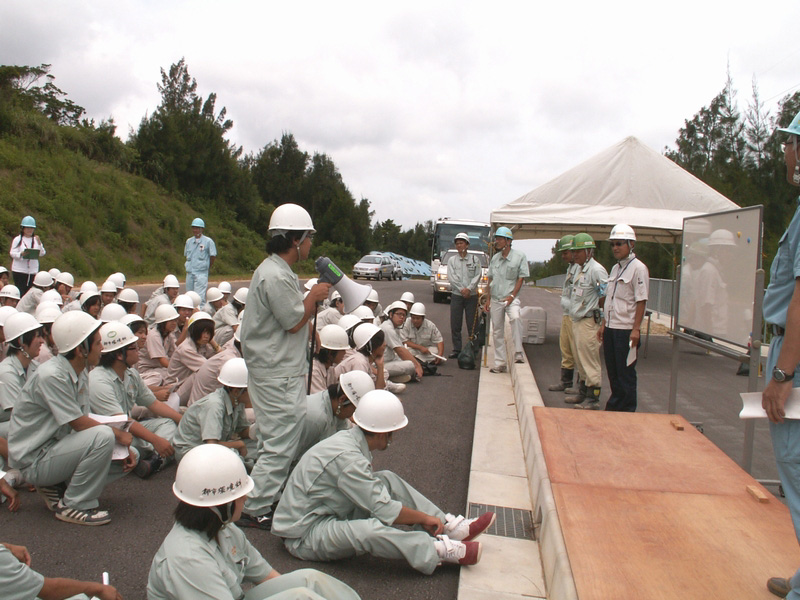 平成22年7月8日(木)、沖縄県立美来工科高等学校 都市環境科1年生〜3年生の生徒107名を対象に、恩納バイパス・名護東道路トンネル工事現場見学会が行われ、恩納バイパス、名護東道路1、2号トンネル 内で工事担当者から工事の施工法や進歩状況などの詳しい概要説明を受けました。