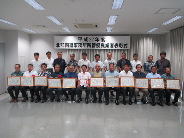 北部国道事務所では、去る7月20日(水)に平成27年度北部国道事務所所管優良業者表彰式を執り行いました。