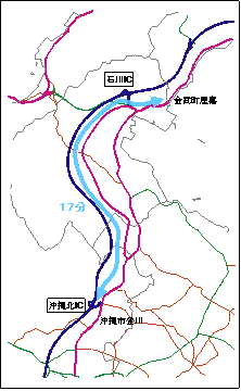 旅行時間(金武町屋嘉〜沖縄市登川)