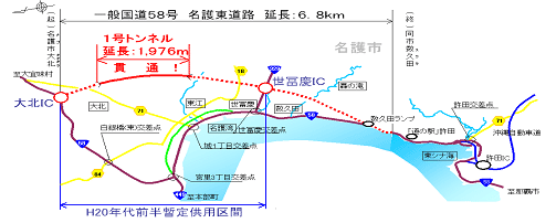 ◎名護東道路を利用することにより名護市大北から沖縄自動車道許田ICまでの所要時間が約5分短縮されます。 |