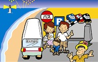 送迎バスは、一般車両が通行することのできない海洋博公園内の道路を利用できるため、渋滞箇所を避けてのスムーズな運行が可能となり、海洋博公園〜名護(ジャスコ名護店)間を約1時間※2で走行します。通常、サマーフェスティバル当日は、花火大会終了後の大渋滞により、名護まではピークで3時間以上かかっていたため、P&BRを利用し、公園内を運行することで約2時間の時間短縮となります。