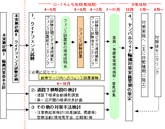 以下のフローに従い、ヤンバルクイナ等の小動物の輪禍対策の検討を行う。
