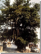 推定年齢は300年、高さ19メートル、幹の周囲は10メートル、樹冠の周囲は30メートル。台風による倒木を防ぐための支柱に支えられていますが、樹木の精霊そのものの堂々とした姿で、名護の守り神として人々に愛されています。もし、この木が倒れてしまったら、どれほど淋しい想いをすることでしょうか。