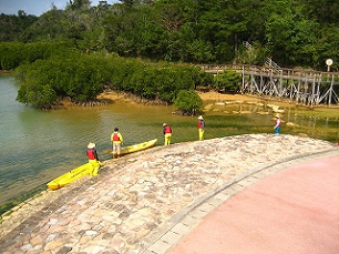 2時間の旅を終えて「慶佐次川マングローブ林カヌー探検ツアー」から帰ってきたばかりの大学生に、感想をたずねてみました。「自然そのもののなかにいる、という気持ちになりました。そして将来、こうした仕事を自分もやってみたいと思います。ガイドさんのお話を聞いて、自然や動植物を守るために、なにが必要か、を考えさせられましたよ」。その感想を聞きながら「キミ、明日からここで働いてみるかね」と返す東村出身のガイドさん。うりずんのやんばるで、エコツーリズムの「今」に出会いました。