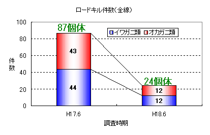 【昨年度との比較〜道路で轢かれたカニ類の数〜】