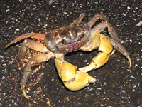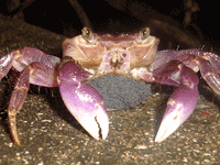 オカガニは、繁殖期の満月の夜にふ化をするために海に移動します。その際に残念なことに車に轢かれオカガニの死骸を発見することが多々ありました。