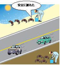 35個体のカニを無事に横断