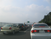 【混雑する許田IC出口】