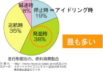 車を発進させる時が、二酸化炭素の排出量が38%と一番多く、またアイドリング時(停止時)も19%と多いんだよ。