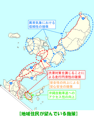 また、地域別にみると、北部では異常気象時、恩納村などのリゾート地では渋滞対策が必要と感じているね。