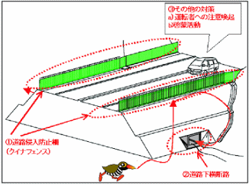 【ヤンバルクイナと自動車が出会わない道路構造イメージ】
