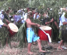 安田シヌグのウフシヌグの年は、男たちが山に入り、神から霊力を授かった「一日神」となって村を清める「ヤマヌブイ」が最大の行事です。一日神になった男たちは、 ある言葉を叫びながら村に向かうのですが、なんと言っているのでしょうか?