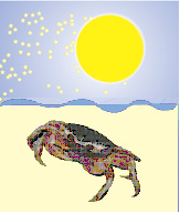 (大潮)は、オカガニやイワガニが、腹に抱えた幼生(ようせい)たちを海の中に放つ大切な日です。 満月の夜は潮のみちひきの差が大きいので、わが子を波に託して遠くに運ぶには都合がいいようです。