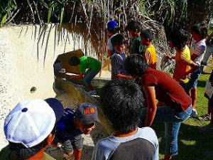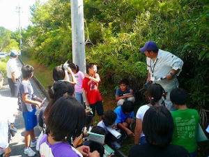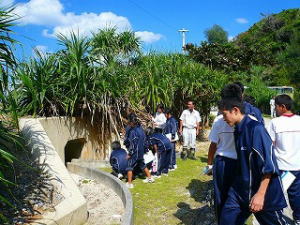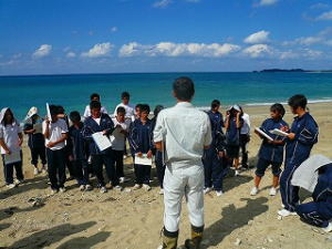 ウミガメ産卵箇所見学。環境監視員の方に生態や