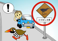 車を運転している人々にヤンバルクイナへの注意を促す看板や道路標識を設置します。また、運転者の視界を確保するため、 年に1〜2回道路沿いの草刈作業を実施します。
