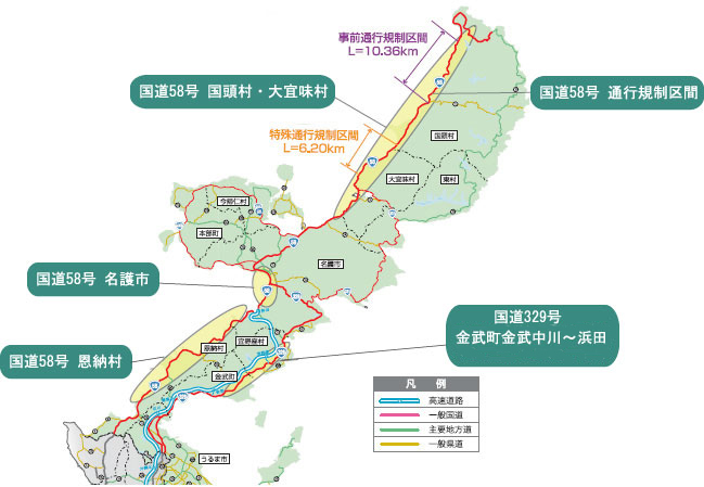 北部国道事務所では、恩納村以北の国道58号、うるま市以北の国道329号の2路線を管理しています。