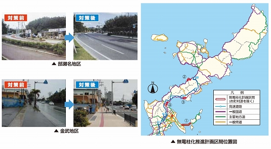 地域住民への道路整備に対するアンケート調査の結果、渋滞対策に次いで電線・電柱の地中化が優先して実施すべき対策に挙げられます。