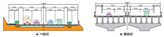 複数の事業を関連事業として工事を集約することで、同一箇所での工事の日程が分散することを防ぐとともに、同時に工事実施を行なうことで、工事時間に縮減を図っています。