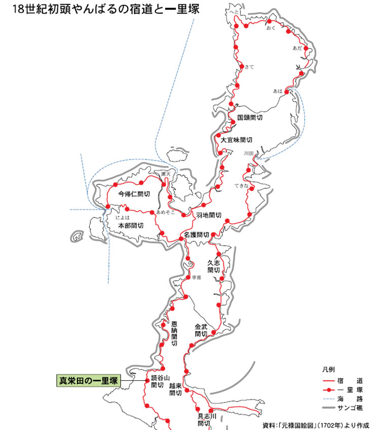 18世紀初頭やんばるの宿道と一里塚 |