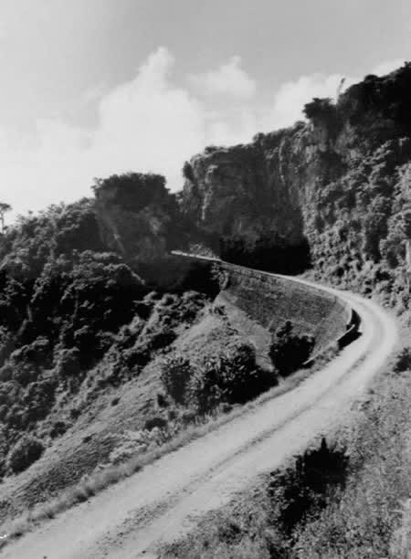 その状況をみかねて、1912(大正元)年、辺戸 尋常 ( じんじょう ) 小学校校長に 就任 ( しゅうにん ) した27歳の若き教師・ 当山正堅 ( とうやませいけん ) (注1)が「もどる道」の道を通りやすい道にしようと立ち上がりました。当山は、宜名真の人々の生活が貧しいのは、 耕作地 ( こうさくち ) がある辺戸への交通が不便で、 開墾 ( かいこん ) がはかどらないためだと考えたのです。 さっそく、当山は国頭 郡役所 ( ぐんやくしょ ) などに 交渉 ( こうしょう ) しましたが、相手にされませんでした。それでもあきらめず、当山は自分で道を広くする計画を立て、工事を始めることにしました。その際、村の人々は団結して工事にあたることになりました。 これにより、国頭郡も工事を許可し、 火薬 ( かやく ) の払い下げや 技術者 ( ぎじゅつしゃ ) の 派遣 ( はけん ) などの 援助 ( えんじょ ) をしました。工事は1913年5月に開始され、毎日4、50人の宜名真の人が工事を行いました。積んだ石が 崩 ( くず ) れたりする 困難 ( こんなん ) にも負けず、同年11月についに完成しました。もどる道」から「もどらざる道」になったことにより、人はもちろん牛馬も通れるようになり、辺戸上原の開拓が急速に進みました。この道は1983年(昭和58)年に、全長1045メートルの宜名真トンネルが開通するまで、宜名真から辺戸への唯一の道として人々に利用されました。