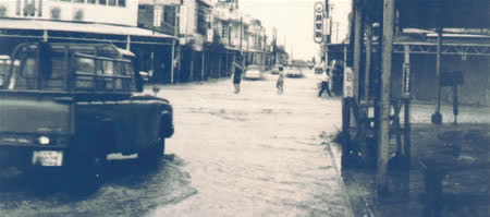 1964(昭和39)年当時の海岸護岸の様子を見てみると、北部の護岸のうち既に築かれているのは2万2897メートルで、復旧、新設を必要とする護岸がまだ8846メートルもありました。このように台風対策の工事は進められていましたが、台風接近による、道路浸水や護岸の決壊による、道路浸水や護岸の決壊などによる交通止めは後をたちませんでした。 |