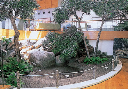 ヤンバルテナガコガネやヤンバルクイナなど貴重な動物が生息する自然の宝庫(として知られている国頭村の自然環境の一部を再現した内容充実のジオラマがあります。展示コーナーには各種展示会が催(される多目的スペースや常設展示コーナーがあり、民具などの資料が数多く展示されています。これらは歴史資料館として活用されています。 |