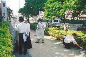 | 実施団体からのメッセージ (社)沖縄建設弘済会は「ボランティア・サポート・プログラム」の一環として、国道58号の名護市伊差川地内の歩道部、及び浦添市勢理客交差点〜那覇市安謝交差点区間の上り歩道部にて清掃を実施しています。 私達の美化活動がゴミのないきれいな地域づくりにつながり、歩行者だけでなく観光客のドライバーや一般ドライバーの方々にも快適に走ってもうらうよう取り組んでいきたいと思います。 |
