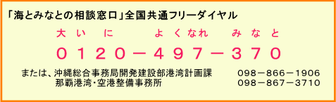 ※フリーダイヤル利用の場合は、発信地最寄りの「海とみなとの相談窓口」に転送されてつながります。