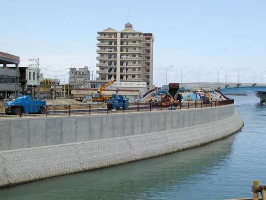 平成12年7月のサミット開催へ向け、那覇インターへのアクセスルートを確保し、早期の全線4車線化による那覇市内の交通混雑緩和を図るために、既存の道路敷内での暫定4車化に取り組み、平成11年8月13日に供用いたしました。これにより供用前に発生していた渋滞が解消、通過時間が大幅に短縮されています。