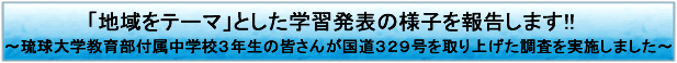 TOP/トピックス・記者発表/平成21年10月19日掲載:トピックス「琉球大学教育部付属中学校3年生の皆さんが国道329号を取り上げた調査を実施しました。」 |