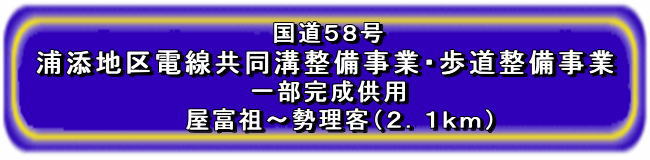 国道58号浦添地区については、平成12年度事業化を行い施工中でしたが、このたび、屋富祖〜勢理客2.1kmについて、沿道住民のご協力の下に「交通バリアフリー法」に対応した最新の歩道空間整備も併せて、一部完成供用されました。 |