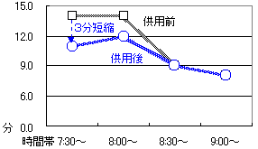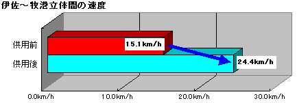 通過時間が6分短縮(約16分→約10分)、 速度が約9km/時向上(15km/時 → 24km/時)
