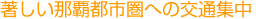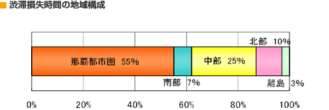| 那覇都市圏の渋滞は著しく、沖縄県の渋滞損失時間の約6割が那覇都市圏で発生しています。道路整備等による抜本的な渋滞対策が必要です。 |