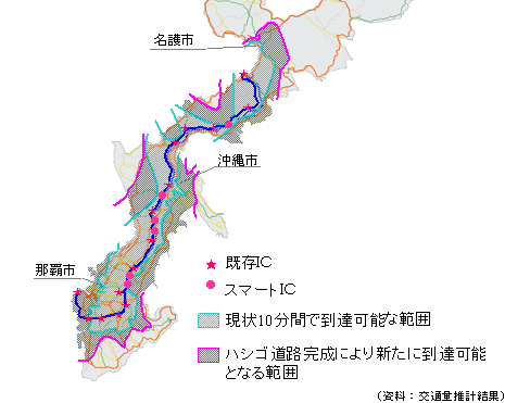 南北方向に広がる地域特性を持ち、南部地域に都市基盤や交通拠点が集中している沖縄本島では、北部地域を中心に時間的ハンディキャップを抱えています。