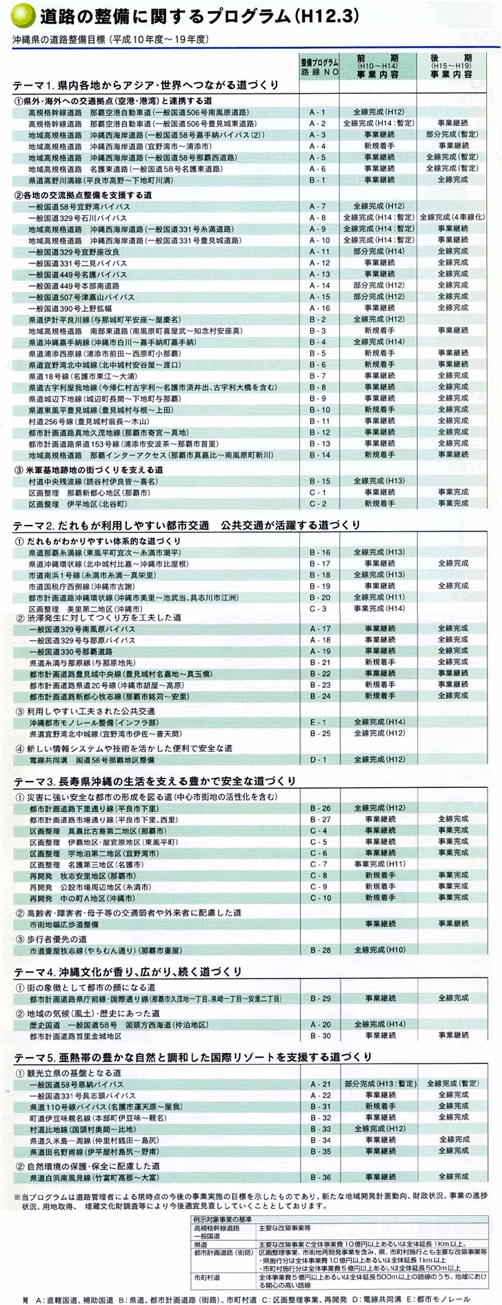 沖縄県における新たな道路整備計画に基づき今後10年間のうちに進められる事業の一部の例示です。新規事業については、平成14年度までに着手予定の箇所を記載しています。