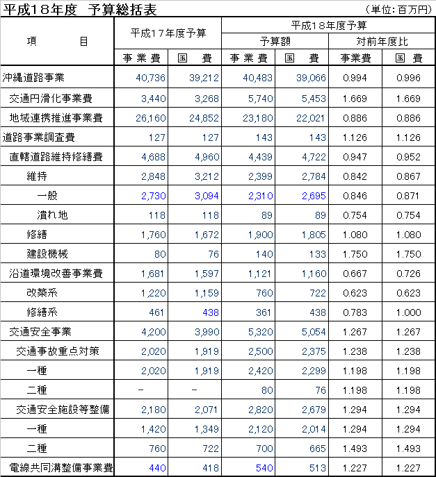 ・一般国道58号 座津武防災、謝敷拡幅、一般国道329号 宜野座改良、金武バイパス、与那原バイパス、一般国道331号 摩文仁改良、中山改良の事業促進 |