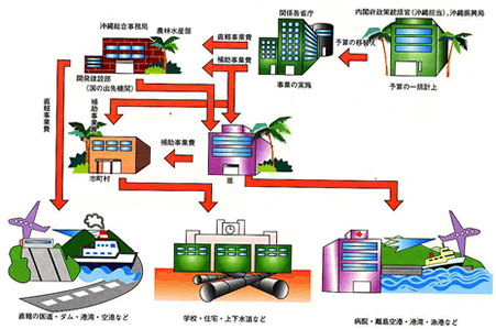国・県・市町村などは、沖縄振興計画(平成4年度〜平成13年度までは、第3次沖縄振興開発計画)に基づいて、 |