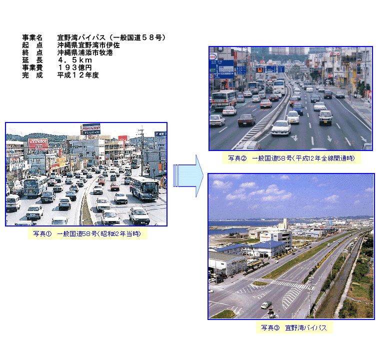 宜野湾バイパスは、一般国道58号宜野湾市市街地の交通渋滞解消を目的とする事業です。
