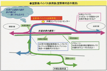 ○国道330号、沖縄自動車道等利用できる道がふえて沖縄コンベンションセンター周辺地域の利便性は向上。