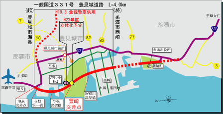 | ○ | 豊見城市豊崎地区立体化約0.6kmをH23年度末までに供用いたします。 |